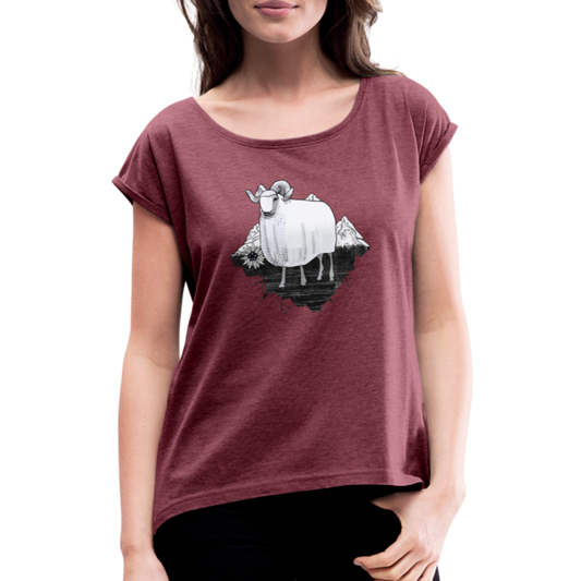 Frauen T-Shirt mit gerollten Ärmeln - "Schaf in den Bergen"
