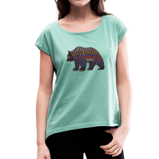 Frauen T-Shirt mit gerollten Ärmeln - "Bunter Grizzly"
