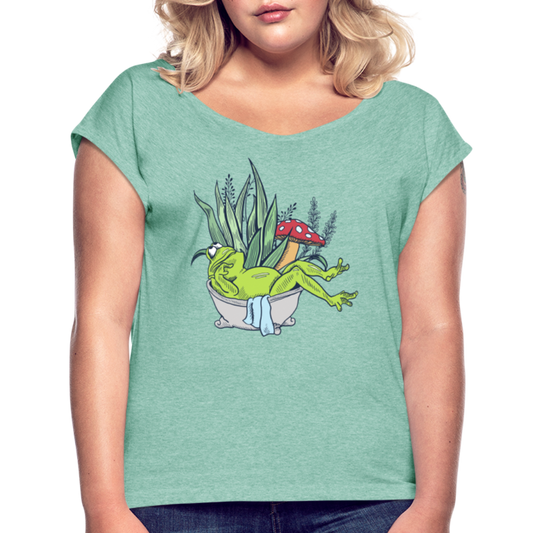 Frauen T-Shirt mit gerollten Ärmeln - “Cottagecore_Frosch in der Badewanne”