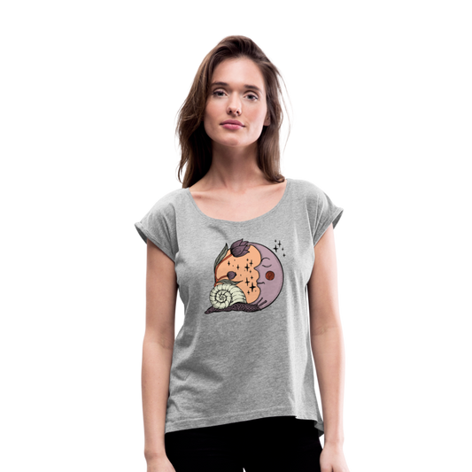 Frauen T-Shirt mit gerollten Ärmeln - “Cottagecore_Schnecke und Mond”