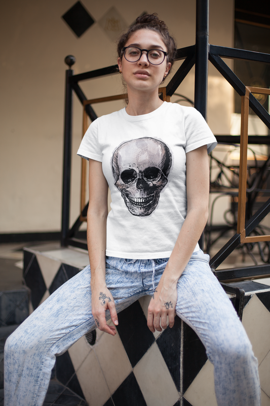 Frauen Premium Bio T-Shirt - "Totenkopf in Tinte"