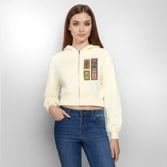 Frauen Oversized Cropped Kapuzenjacke - "Safety Matches"