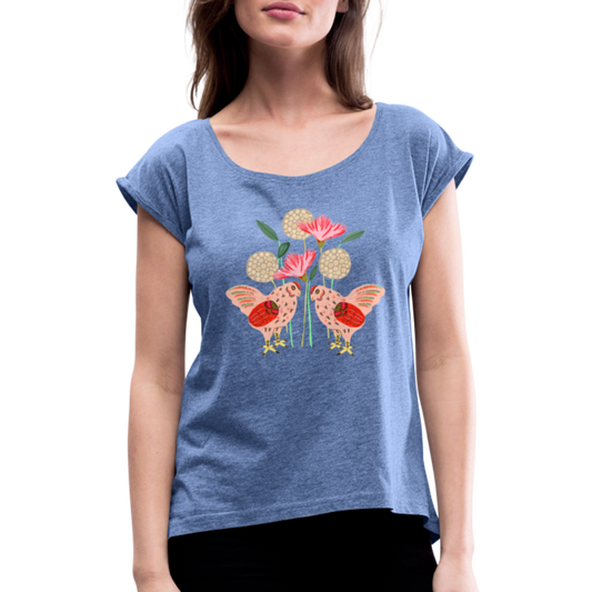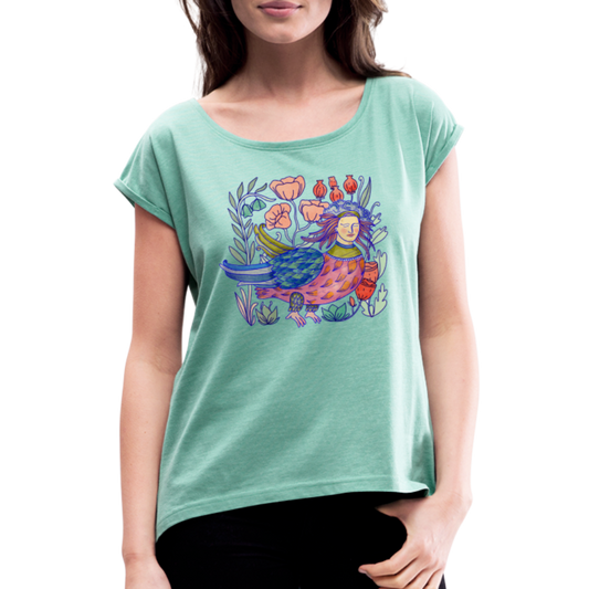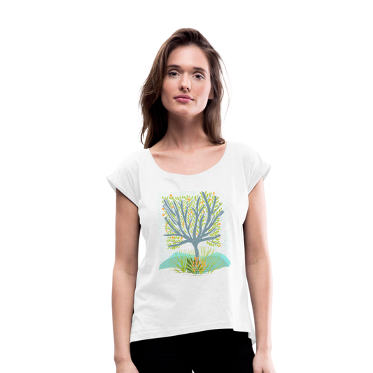 Frauen T-Shirt mit gerollten Ärmeln - “Kleiner Garten”