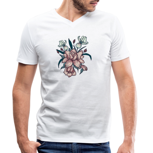 Männer Bio-T-Shirt mit V-Ausschnitt - "Vintage-Orchideen"