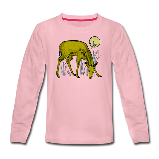 Teenager Premium Langarmshirt - "Reh in Olive"