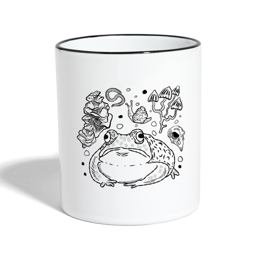 Tasse zweifarbig - “Wimmelbild mit Frosch und Pilzen”